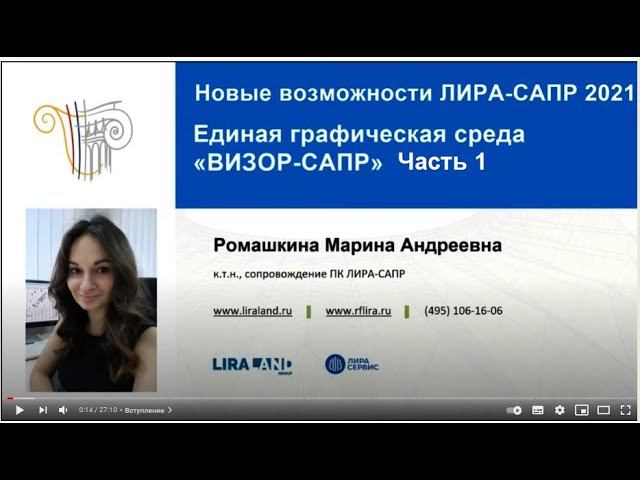 Доклад Ромашкиной М.А., к.т.н., инженер сопровождения ПК ЛИРА-САПР. Обзор новых возможностей создания, визуализации расчетных схем, анализа исходных данных и результатов расчета в единой графической среды пользователя ВИЗОР-САПР. Часть 1. Тайминг: 0:00 Вступление 00:27 Отображение расчетной схемы с учетом назначенных сечений (DirectX). 07:02 Синхронизация просмотр результатов и сравнение результатов конструирования. 12:52 Признак “не сшивать” узлы при упаковке. 15:49 Расчет с контролем параметров - сохранение настроек расчета. 17:58 Суммарная площадь заданного армирования в пластинах по направлению Х и Y для нижней и верхней грани. 22:47 Создание файла *txt на основе параметров огнестойкости для задачи теплопроводности. Система: "Теплопроводность": https://help.liraland.ru/1360/ Не забывайте посещать сайт онлайн университета проф. Макеева СА https://sopromex.ru/ Подписка на все бесплатные видео для ПГС проф. Макеева СА http://m1.sopromex.ru/