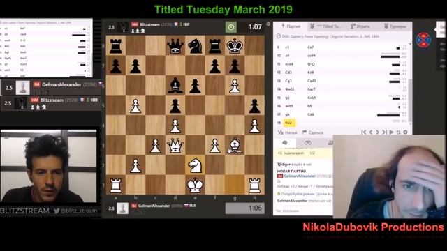 Шура Гельман vs Kevin Bordi (Радостные шахматы vs Blitzstream ). (Автор Николай Дубовик)