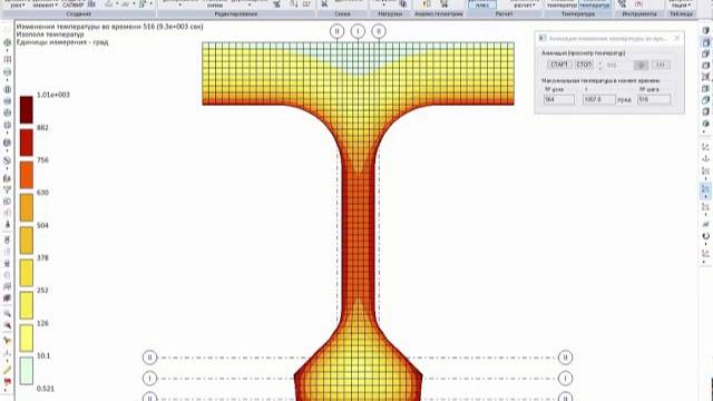 Решение нестационарной задачи теплопроводности изменения температур в сечении бетонной балки