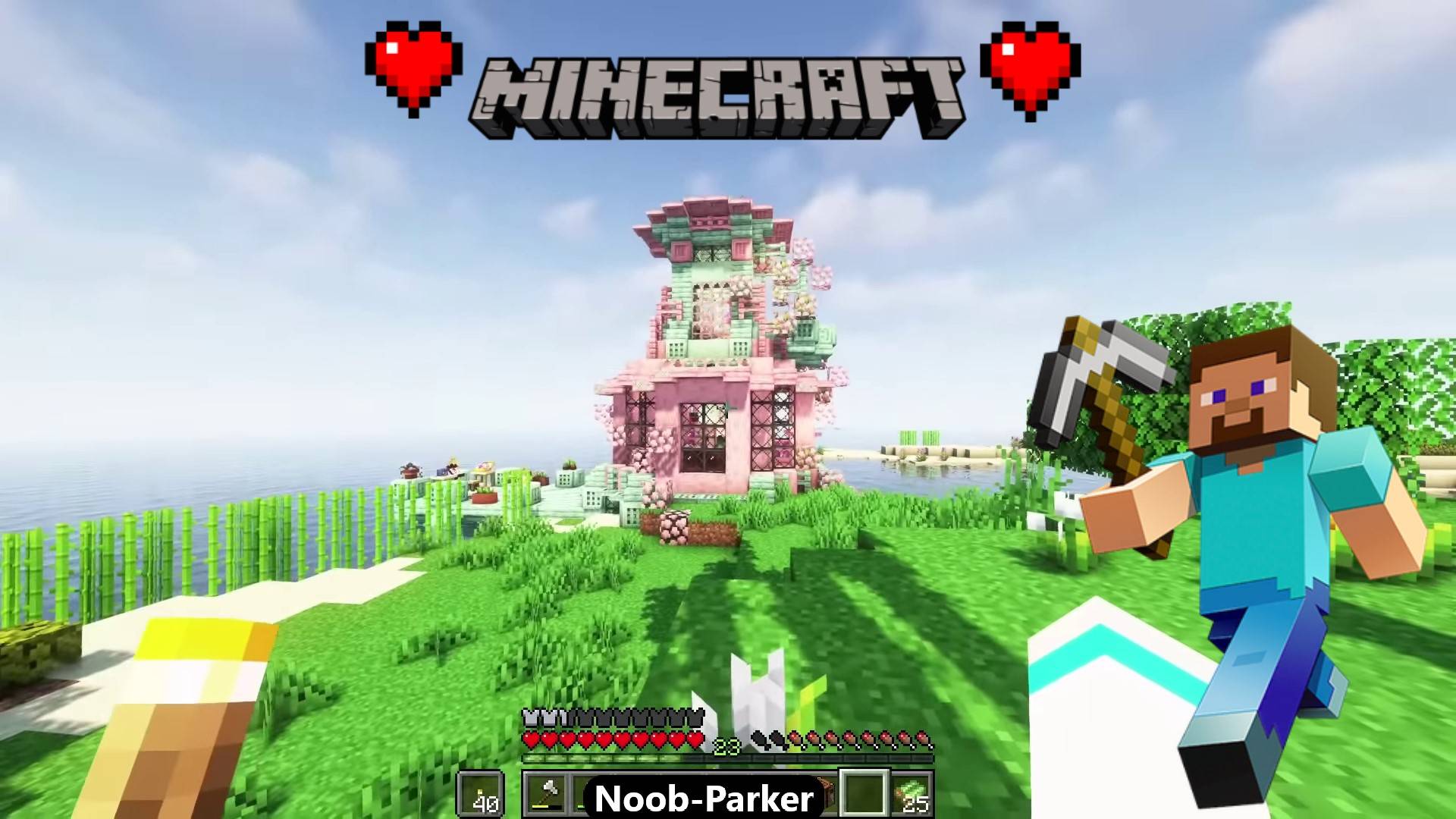 Майнкрафт лонгплей строительство приюта для художников у моря, minecraft.