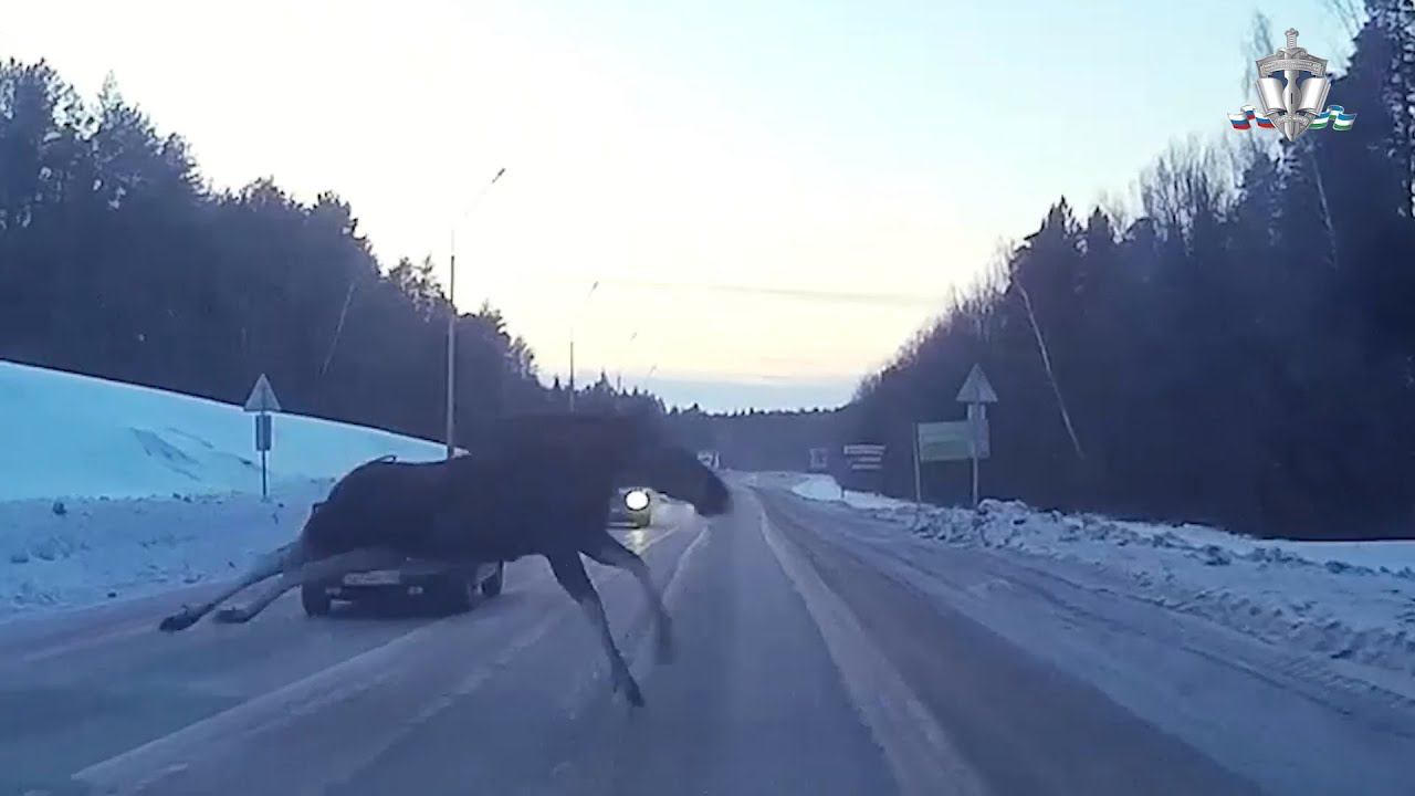 Лось на трассе в Краснокамском районе