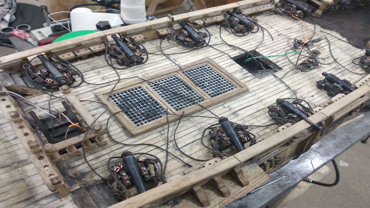 № 75 Сборка модели корабля черная жемчужина. Установка пушек на палубу.