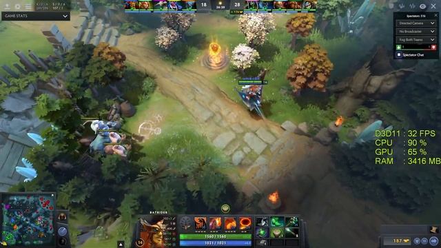 Dota 2 Performance Test (In-Game Spectating) @1080p Various Settings AMD Radeon RX 460 4GB + Core 2 Duo E8400 $95 (€80, £ 75) PC Test Setup: We bought this PC second hand on september 2 2017 (EURO/DOLLAR APP. 1.20) (GBP/USD APP. 1.30) CPU : Intel Core 2 Duo E8400 Graphics Card : GeForce 8800 GT Motherboard: Gigabyte GA-EP45-DS3L RAM : 4GB DDR2 (2X2GB) HDD : 640GB PSU : Cooler Master 530 Watt CASE : Cooler Master CM 690 (USB 2) The advantage of this system is the spacy (and still relatively expensive) case. We removed the GeForce 8800 GT and paired it with: Graphics Card : Gigabyte Radeon RX460 WINDFORCE OC 4G