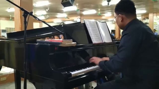 Jeff Ballentos accompanies Faye Recorba, Mylyn Botalon, Niña Krizel Punzalan, Ycel Vidal-Recorba, and Bernadette Villariño-Herrera as they take on Alfred Henry Ackley's well-loved hymn entitled "Tell the World Jesus Saves" on July 7, 2019 at the Christian Bible Baptist Church Los Baños (CBBCLB) Auditorium.