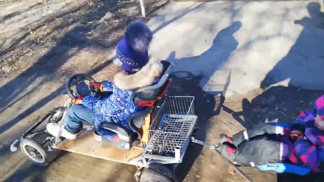 Электромобиль с прицепом из мотор-колёс от гироскутера