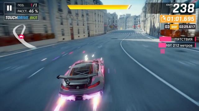 Asphalt 9: по городу Париж 02:14:807 MERCEDES AMG GT Grand Prix R6