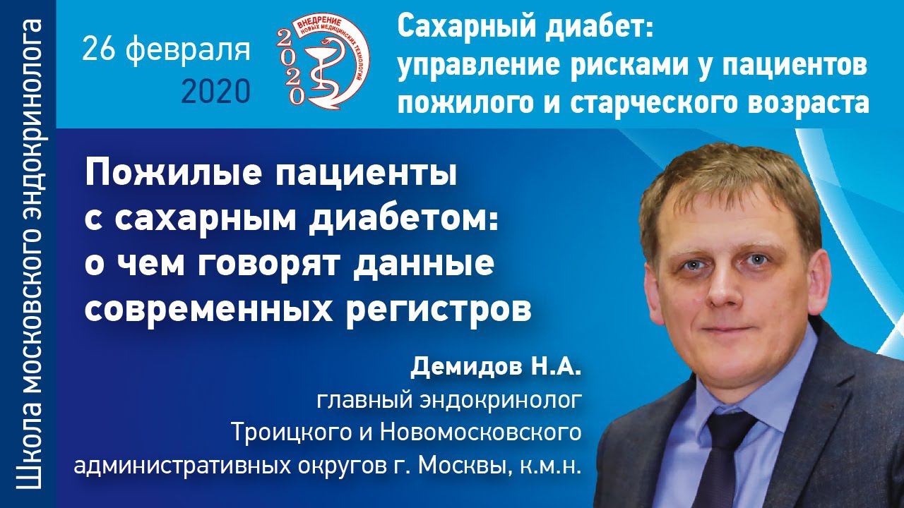 Демидов Н.А. - Пожилые пациенты с сахарным диабетом: а чем говорят данные современных регистров. 26 ФЕВРАЛЯ 2020 ГОДА Научно-практическая конференция САХАРНЫЙ ДИАБЕТ: УПРАВЛЕНИЕ РИСКАМИ У ПАЦИЕНТОВ ПОЖИЛОГО И СТАРЧЕСКОГО ВОЗРАСТА "На 1 января 2020 года московский регистр по сахарному диабету включал 331 тысячу пациентов с сахарным диабетом 2-го типа. Женщин в нем почти в два раза больше, чем мужчин. По данным, регистра, в прошлом году средняя продолжительность жизни женщин с сахарным диабетом 2-го типа составила 79,3 года, мужчин – 72,3 года. А продолжительность жизни с момента постановки диагноза у женщин – 14 лет, у мужчин - около 10 лет. Регистры пациентов – прекрасный инструмент для анализа ситуации и управления ей. Именно регистры дают истинную картину распространенности патологий, структуры заболеваемости, коморбидности и т.д. Именно регистры позволяют формировать эффективные профилактические программы, определяться с номенклатурой и объемами закупок препаратов. О том, какие возможности предоставляет регистр, о проблемах, с которыми приходится сталкиваться при его наполнении, рассказывает Николай Александрович ДЕМИДОВ, главный эндокринолог Троицкого и Новомосковского административного округа г. Москвы, к.м.н. " Подробная информация о мероприятие: http://imfd.ru/events/2020/541/ Информационно-выставочное агентство «ИнфоМедФарм Диалог»: http://imfd.ru/ https://vk.com/imfd_dialog Производство выставочных стендов вашей мечты: http://imfd-expo.ru/