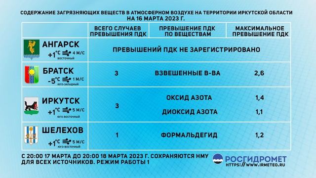 [17.03.2023] Мониторинг состояния атмосферного воздуха на 16.03.2023
