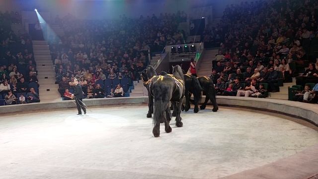 Лошадки на арене. Цирк.