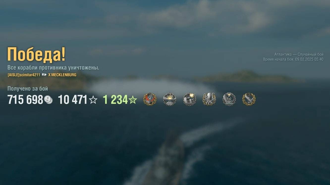 Линкор Mecklenburg: +255к урона 7 фрагов на карте Атлантика - World of Warships