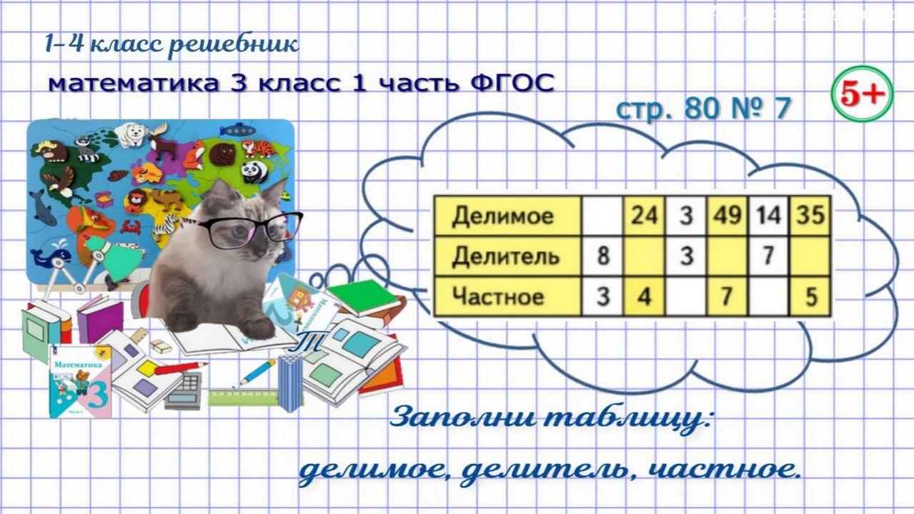 Стр. 80 № 7 заполни таблицу: делимое, делитель, частное математика 3 кл 1 часть ФГОС 2023