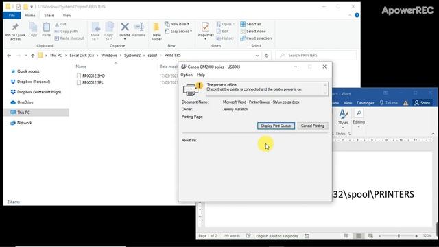 This short video provides a practical demonstration of how the Printer Queue functions on a Windows computer.