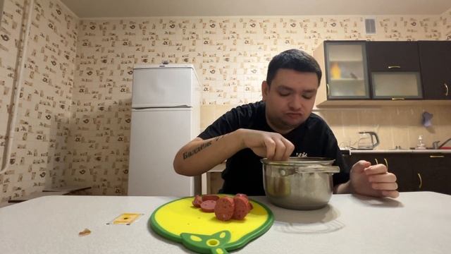 Видеоблогер ночью перекусывает лапшой, Руслан Гительман Фудблогер, видеоблогер города Тюмени ночью очень проголодался и решил приготовить пачку лапши быстрого приготовление и взял в закуску к лапше быстрого приготовление полукопчёной колбасы.