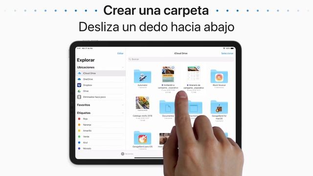 La app Archivos mantiene todas tus carpetas y archivos en solo lugar conveniente. Aprende cómo usarla desde tu iPhone y iPad. Para obtener más información sobre este tema, consulta los siguientes artículos: Usar la app Archivos en el iPhone, iPad y iPod touch: https://apple.co/2y2RdVj Manual del usuario del iPad - Ver archivos y carpetas en Archivos en el iPad: https://apple.co/2JNWTIq Manual del usuario del iPad - Organizar archivos en carpetas en el iPad: https://apple.co/30RdL8f Recursos adicionales: Comunícate con el Soporte técnico de Apple para iPad: http://apple.co/iPad Para suscribirte a esta canal: Apple Chile - YouTube: https://apple.co/2Hjgn4C, Apple Colombia - YouTube: https://apple.co/2IdttC3, Apple México - YouTube: https://apple.co/2G6SLAR Para descargar la app Soporte de Apple: http://apple.co/2hFtzIv Soporte técnico de Apple en Twitter: https://twitter.com/AppleSupport