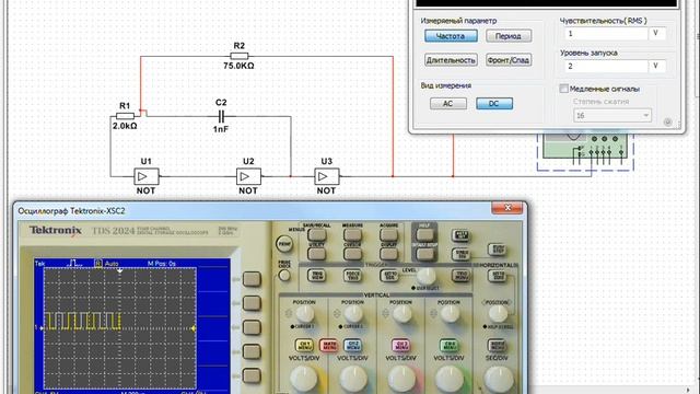 Генератор прямоугольных импульсов на логических элементах в Multisim 14.1