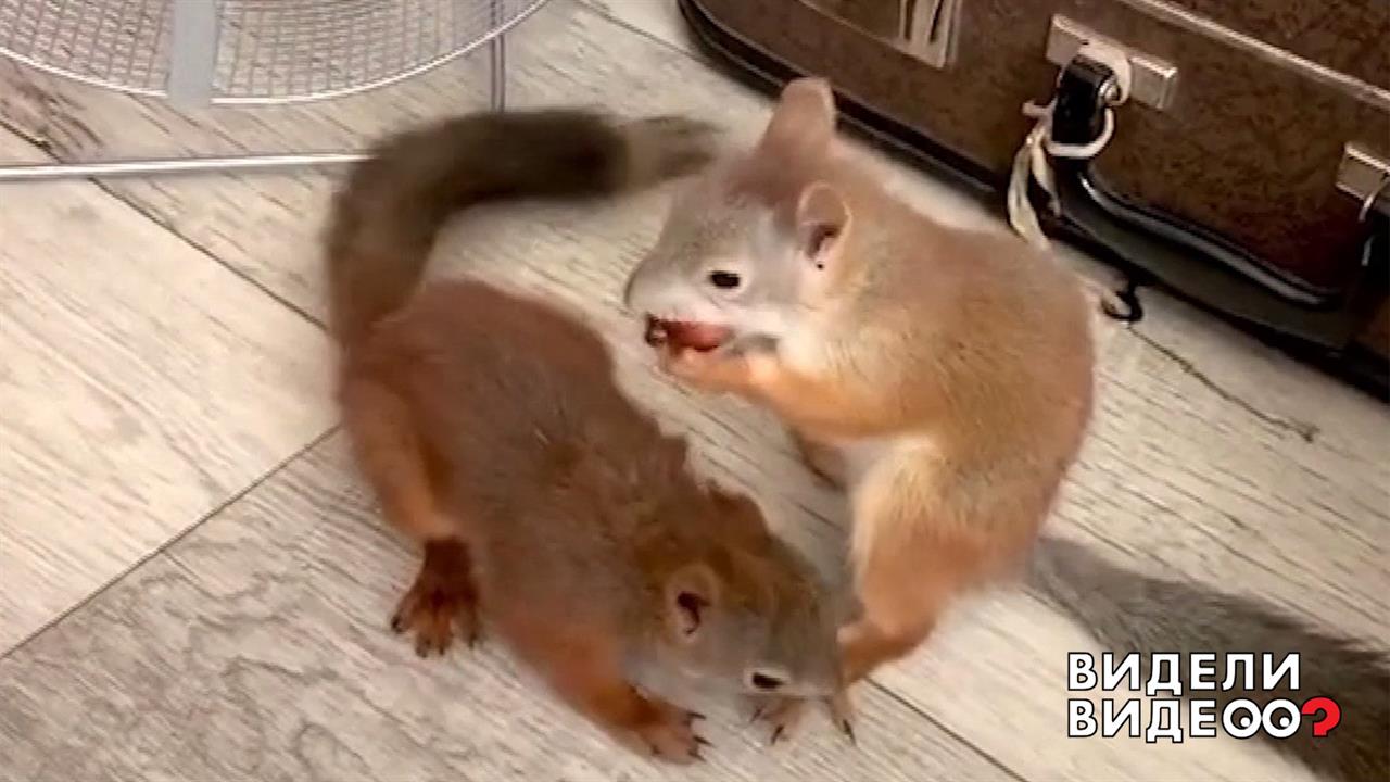 Белки Лея и Евгеша дерутся за орех.