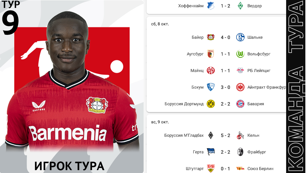 Лучшие Игроки 9 Тура Бундеслига Bundesliga Team 9 Matchday