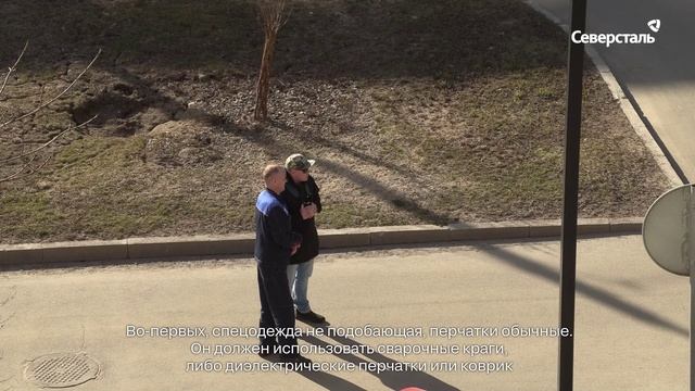 По легенде эксперимента сварщик цеха проводит работы на улице, нарушая при этом все возможные правила охраны труда. Неправильные СИЗ, оголённые провода, лежащий рядом с проведением работ баллон с пропаном.