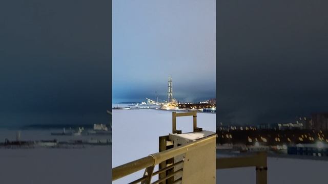 Пешеходный мост, Газпром-арена,много снега Санкт- Петербург