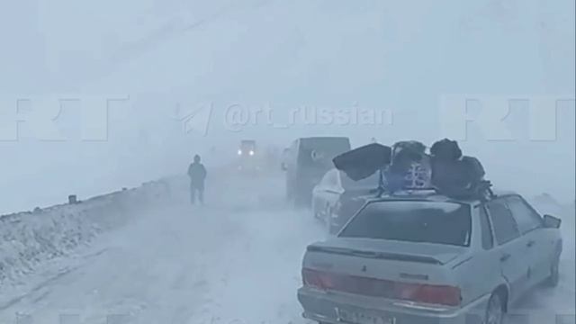 Огромная пробка скопилась на КПП Верхний Ларс на границе с Грузией