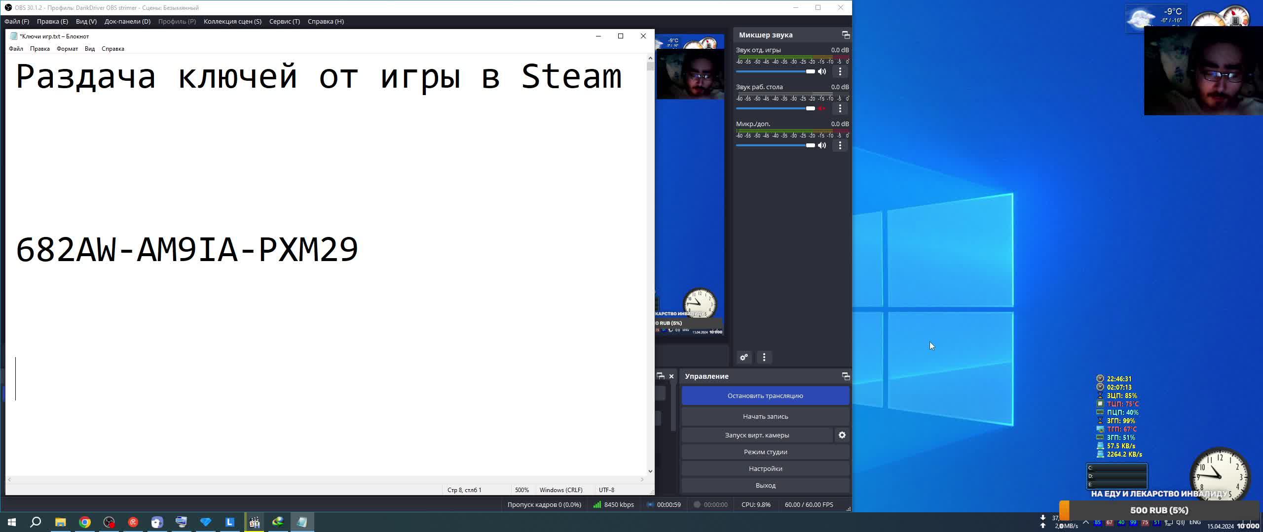 Раздача ключей от игры в Steam