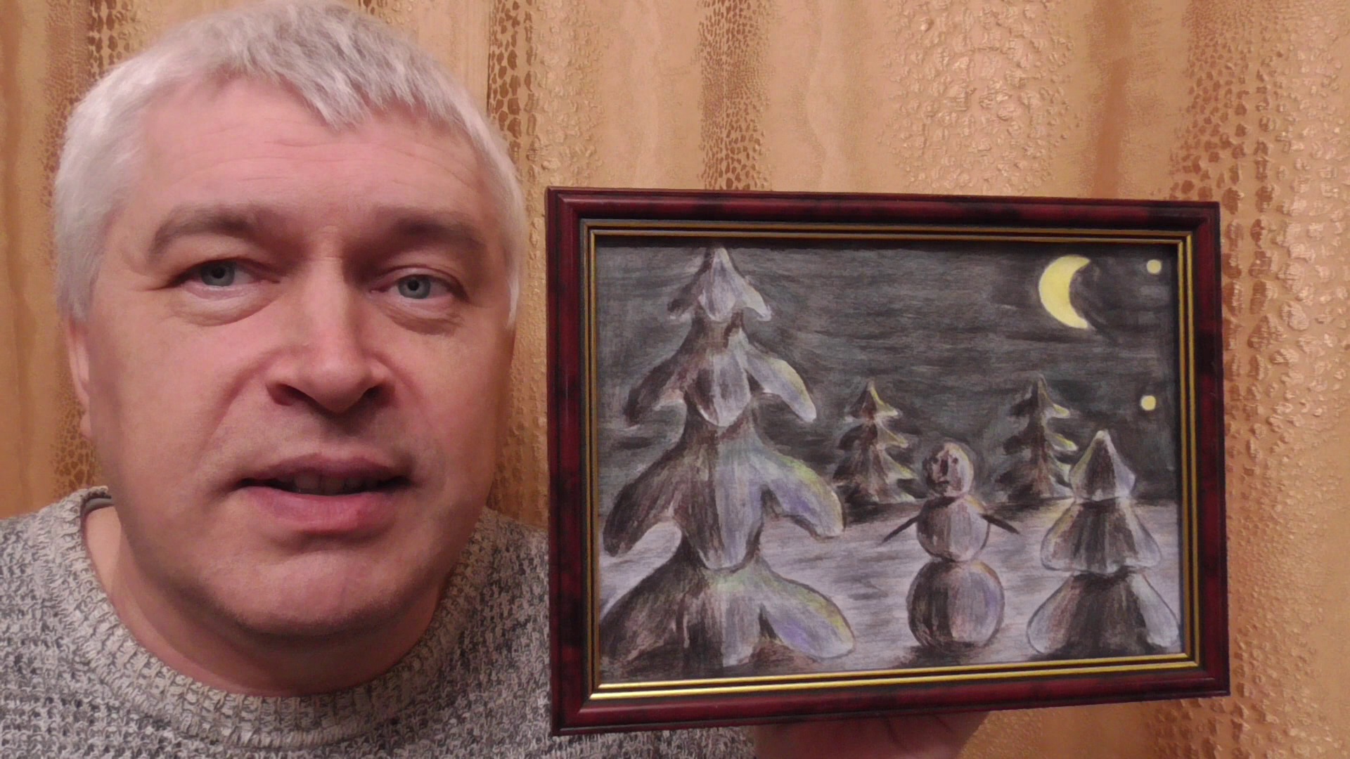 Геннадий Горин говорит про рисунок: Снеговик в лесу
