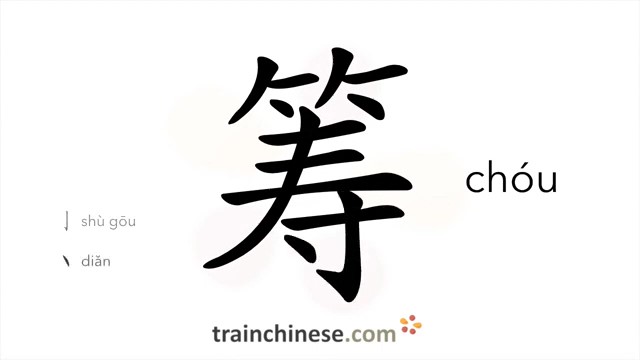 筹 (chóu) ticket; tally; counter; to manage, plan; prepare; devise