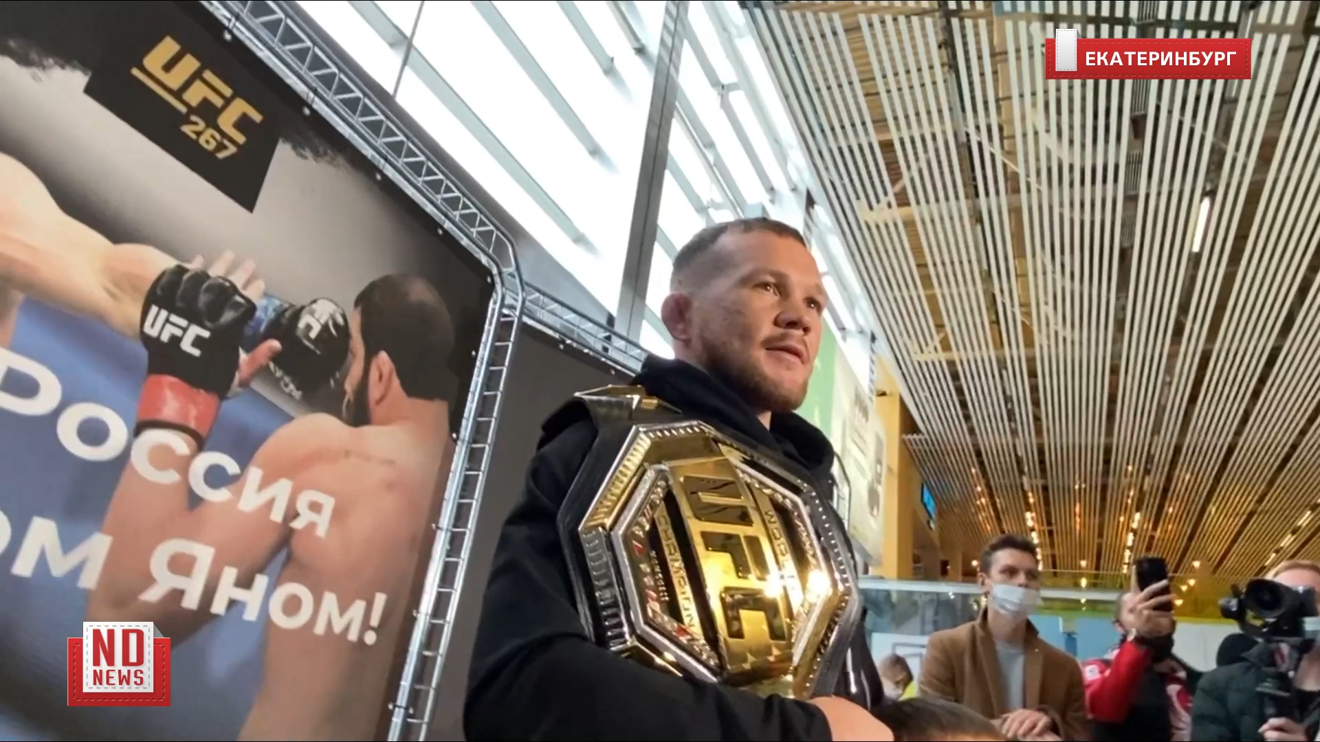 8 ноября 2021 года. Боец клуба «Архангел Михаил» и временный чемпион UFC в легчайшем весе Петр Ян прилетел в Екатеринбург. В аэропорту его встречали одноклубники, фанаты и друзья – в терминале собрались больше 300 человек. Подробнее – https://newdaynews.ru/ekaterinburg/741327.html