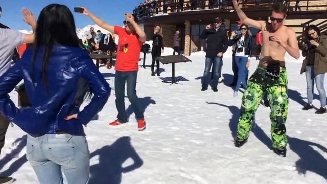 Дискотека поклонников Формулы-1 на вершине 2200 в Горки Город. Ребята в трусняке- не из нашей компании, они просто добавили креатива )) 26.04.17. Красная Поляна.