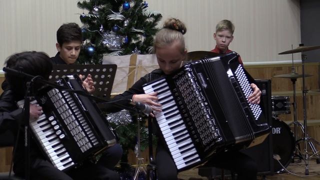 исп. инструментальный ансамбль «Accordeon fest» в составе: Алексея Чеботарёва (аккордеон), Абдулиной Софьи (аккордеон), Новаковского Степана (бас-гитара), Глинкина Фёдора (ударные) А.С. Нефёдова (аккордеон) кл. преподавателя А.С. Нефёдова