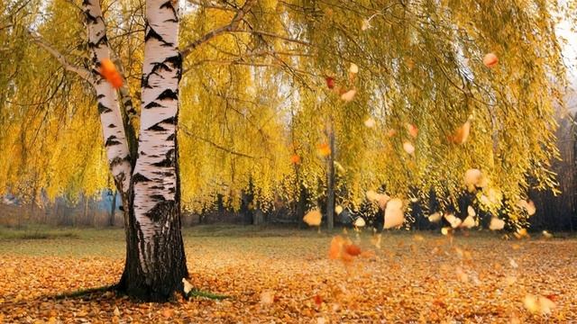 Футаж. Берёза. Жёлтая берёза. Листопад.mp4