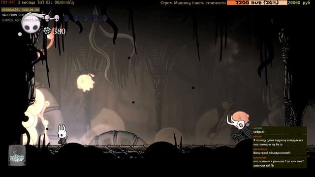 Прямой Эфир проходил тут: https://www.twitch.tv/liventin Hollow Knight — это захватывающая, красивая приключенческая игра в огромном подземном королевстве Халлоунэст. Двумерная игра с акцентом на умения и исследования позволяет вам сражаться с огромным множеством смертоносных существ, избегая сложных ловушек и разгадывая древние загадки, прокладывая себе путь через грибковые отходы, лесные массивы и разрушенные подземные города