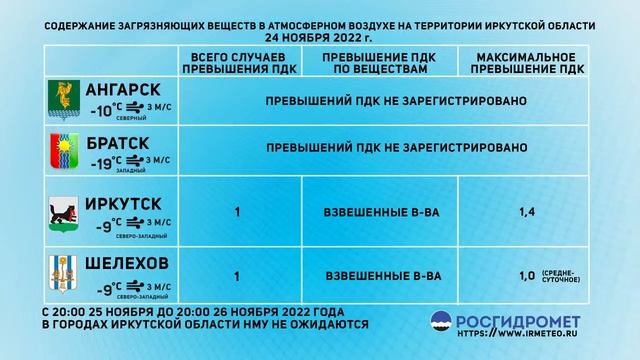 [25.11.2022] Мониторинг состояния атмосферного воздуха 24.11.2022