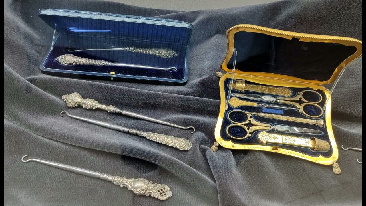 В этом ролике аксессуары для шитья и шнурования ( точнее- застегивания на пуговки) шикарных сапог с высокими голенищами. Наборы обычно серебряные- точнее снаружи серебро фольгированное, внутри ручек наполнитель,рабочие части- сталь. Есть с перламутровой отделкой. Такие крючки еще имели второе назначение- шнурование корсета. И ногти целы и дамы упакованы))))
