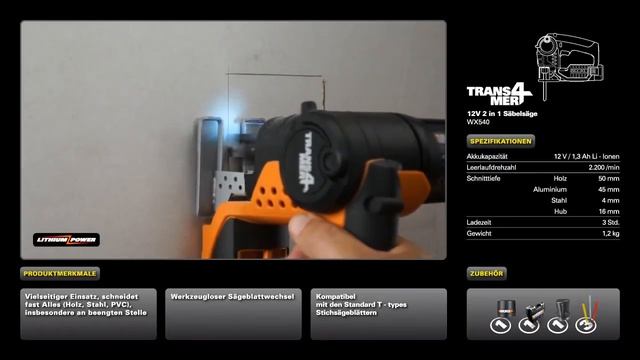 WORX WX540 12V Li Ionen 2 in 1 Säbelsäge Trans4mer