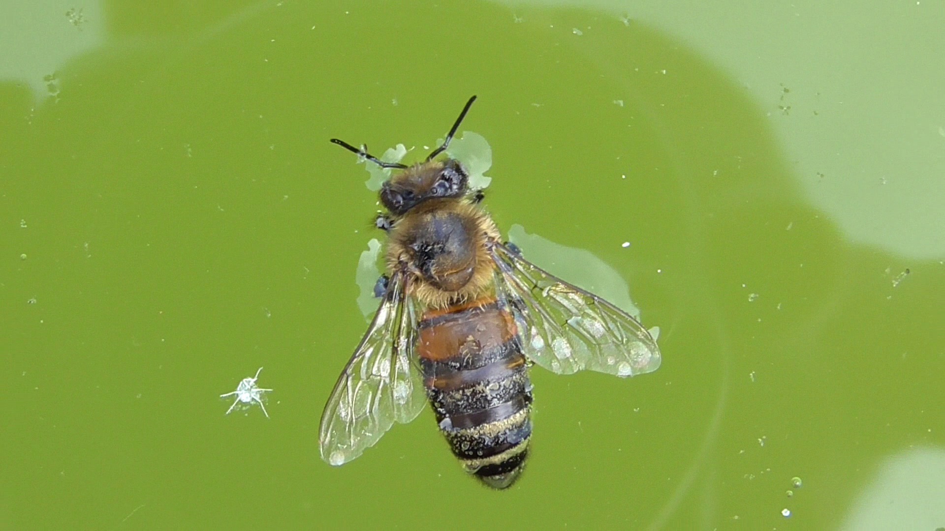 Пчела плавает в воде.MP4