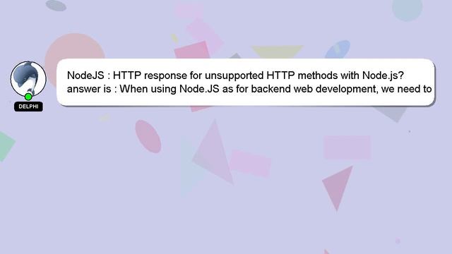 NodeJS : HTTP response for unsupported HTTP methods with Node.js? To Access My Live Chat Page, On Google, Search for "hows tech developer connect" I promised to share a hidden feature with you, and here it is. This is a YouTube's feature which works on Desktop. First, Ensure that the video is playing before proceeding. Then, type the letters 'awesome' on the keyboard. It will change your youtube progress bar into a flashing rainbow. A little intro about me, Hello, I am Delphi. I can provide you with assistance to help you answer your questions. NodeJS : HTTP response for unsupported HTTP methods with Node.js? I am happy to answer more specific questions, so please feel free to comment or chat with me. If you have an answer, or any insights to the answer, please comment below. A 'heart' from me is a way of showing appreciation for your answer. NodeJS with : response HTTP for HTTP unsupported Node.js? methods