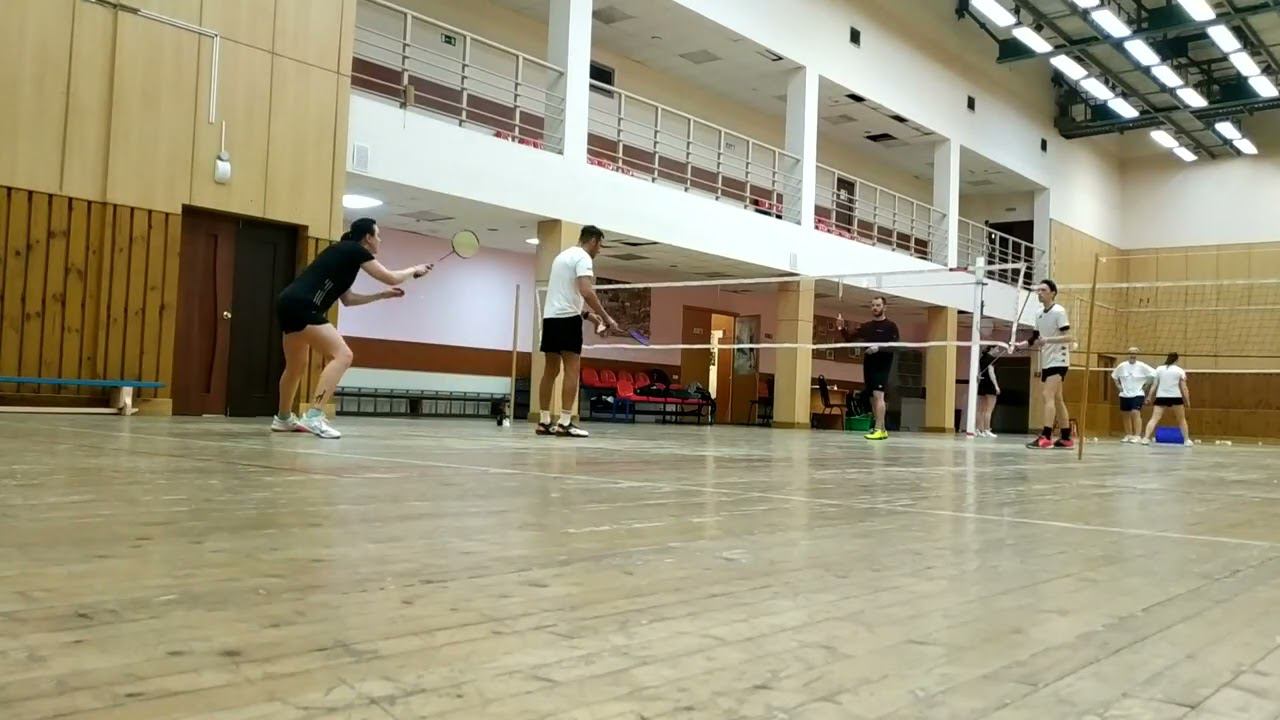 Тренировочная игра в бадминтон через сетку. Играют любители, новички и опытные бадминтонисты. Игра в Лестехе (МГУЛ ранее, сейчас называется филиалом Бауманки). Хочешь тоже играть? Приходи - https://badminton77.ru/map/4/ #badminton #badmintonlovers #badmintonrussia #lesteh #ЛесТех #бадминтон