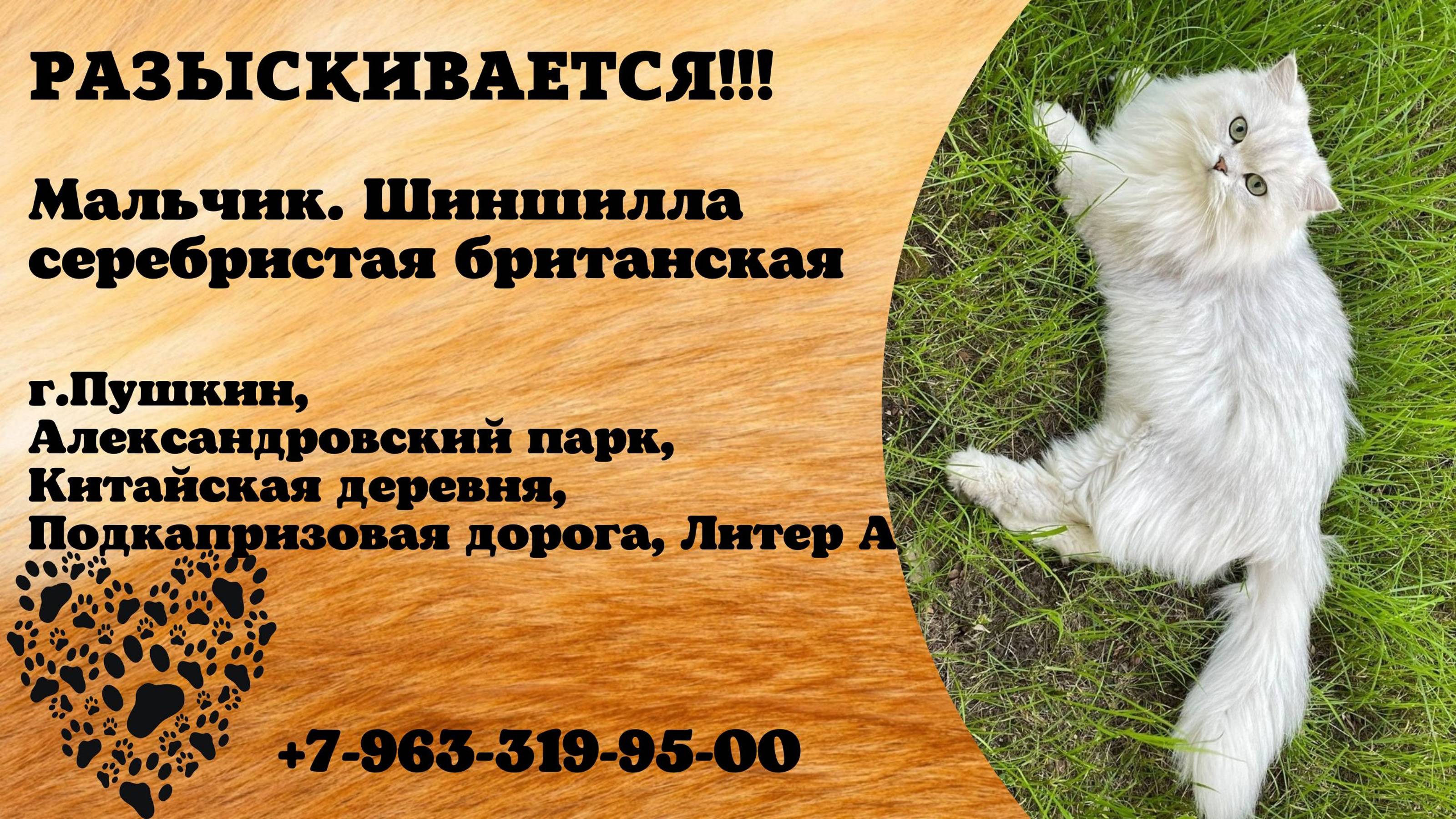 Пропал кот! Мальчик. Шиншилла серебристая британская. г.Пушкин, Александровский парк.(1)