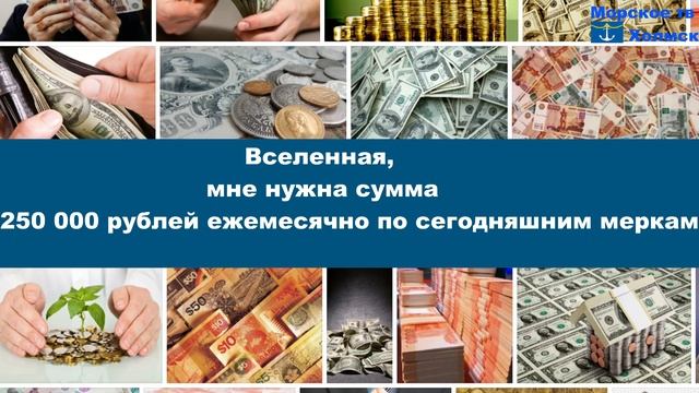 Вселенная, мне требуется сумма 250 000 рублей ежемесячно. Да будет так.