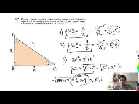 №597. Катеты прямоугольного треугольника равны а и b. Выразите через а и b гипотенузу и тангенсы острых углов треугольника и найдите их значения при а = 12, b=15. Поддержать канал рублём - 5469400944002125 (Сбербанк) Мой второй канал для подготовки к ЕГЭ и ОГЭ - https://www.youtube.com/ЕвгенийСумин Инстаграм - https://www.instagram.com/EGE_OGE.math Личный инстаграм - https://www.instagram.com/ee_sumin VK - https://vk.com/evgeniysumin FB - https://www.facebook.com/EvgeniySumin