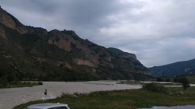 поляна у горной реки у подножия Эльбрус
