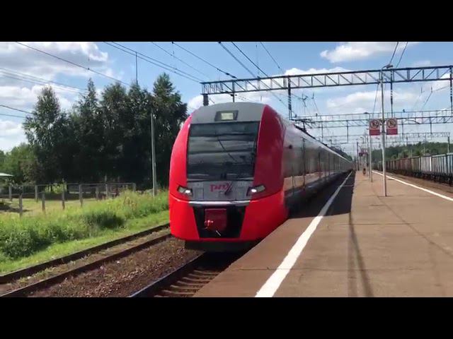 ЭС1-032 "Ласточка" с приветливой бригадой сообщением Москва-Смоленск по ст Петелино