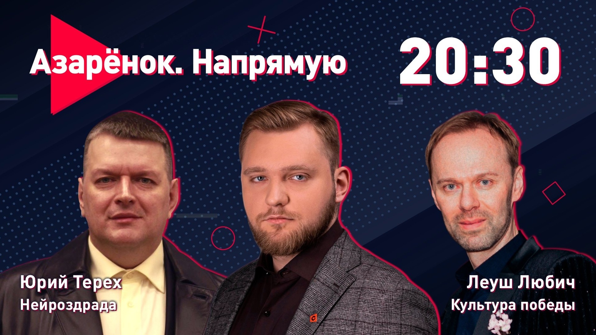 Присоединяйтесь к нашему Telegram-чату: https://t.me/+qTXxHkhwB6ZhOTIy 4 сентября в 20:30. Проект «Азарёнок. Напрямую». О важном говорим в прямом эфире. Вместе с экспертами обсудим судьбу Украины, новости с фронта и культуру победы. В гостях публицист Юрий Терех и артист эстрады, вокалист, актёр Леуш Любич.