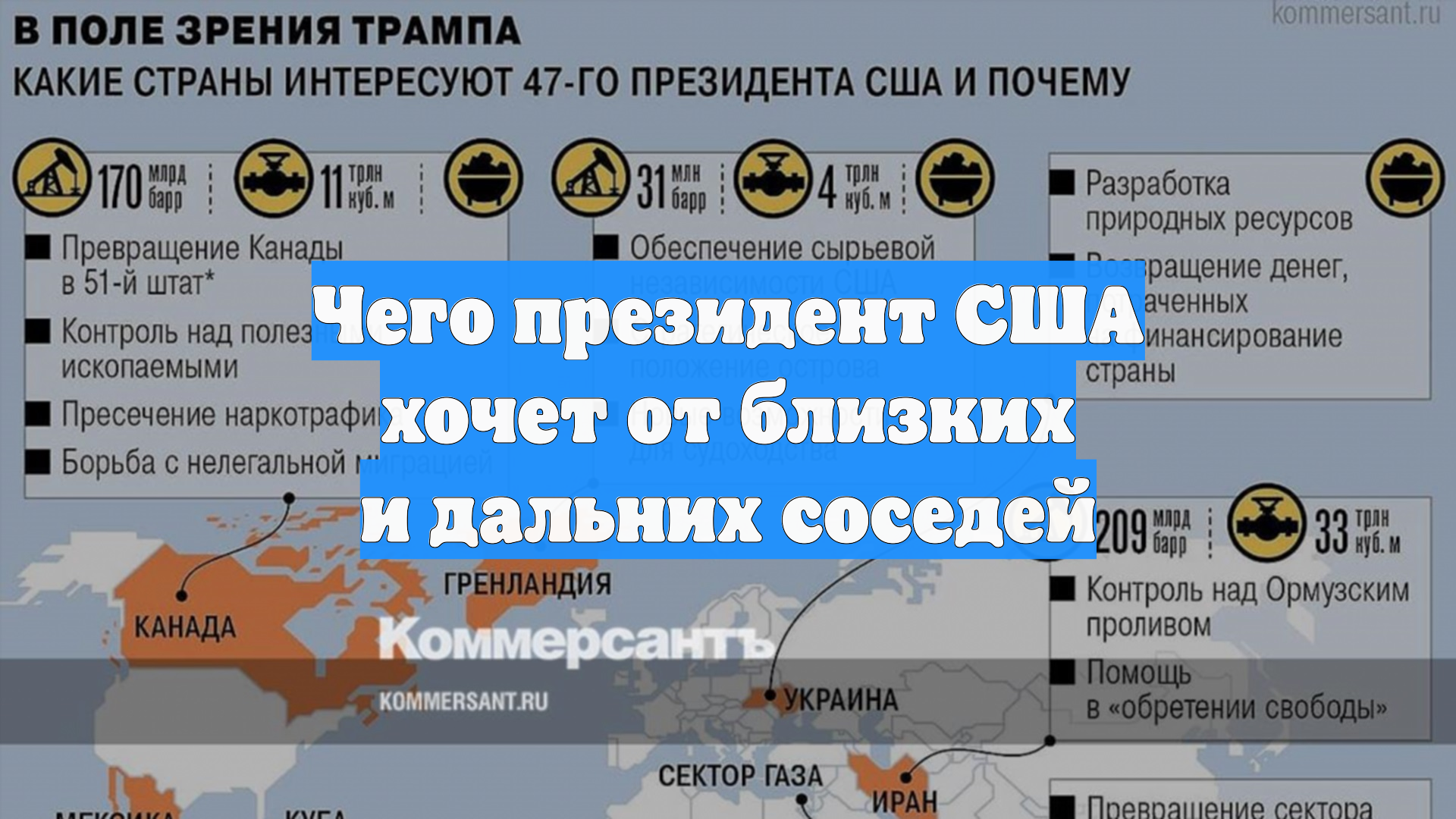 На посту президента США Дональд Трамп в своих публичных высказываниях неоднократно затрагивал суверенитет, ресурсы и внутренние дела различных государств и регионов от сектора Газа до Венесуэлы.