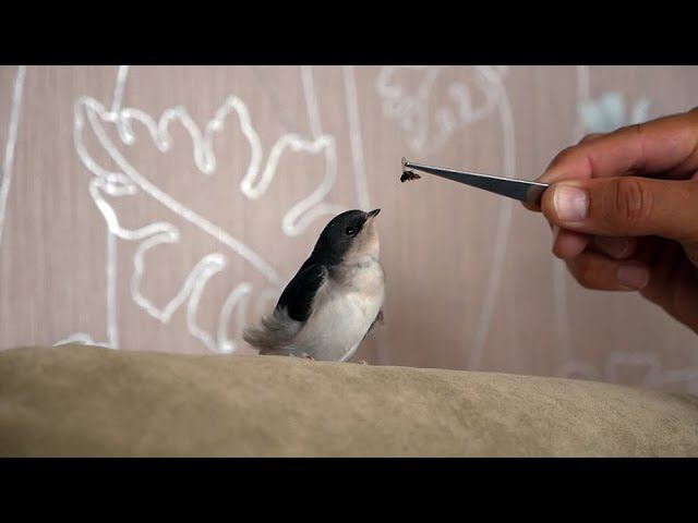Спас ласточку летевшую в стае, упала в огород, 4 дня корми, и отпустил на волю