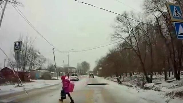 В Хабаровске водитель чудом не сбил девочку на переходе