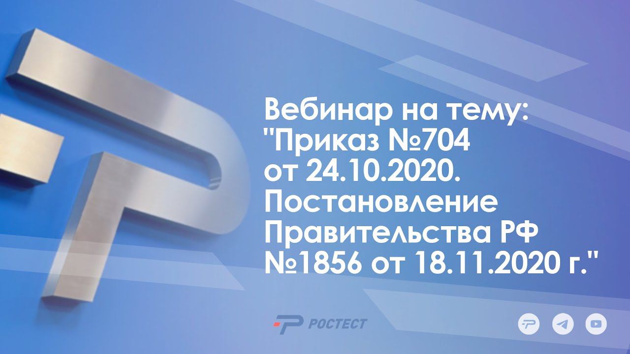 Вебинар на тему: "Приказ №704 от 24.10.2020. Постановление Правительства РФ №1856 от 18.11.2020 г."