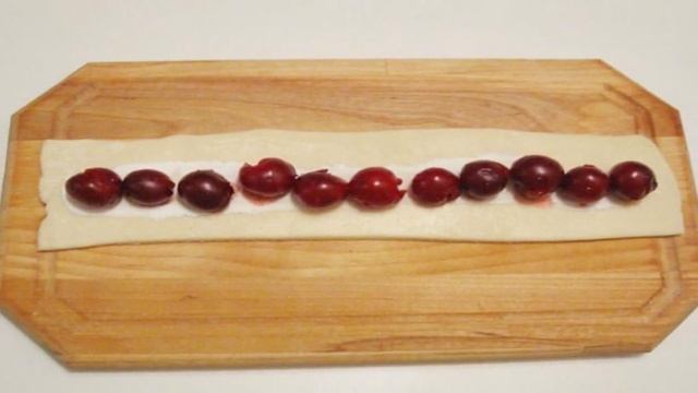 Кольцевой пирог с вишней из слоеного теста
