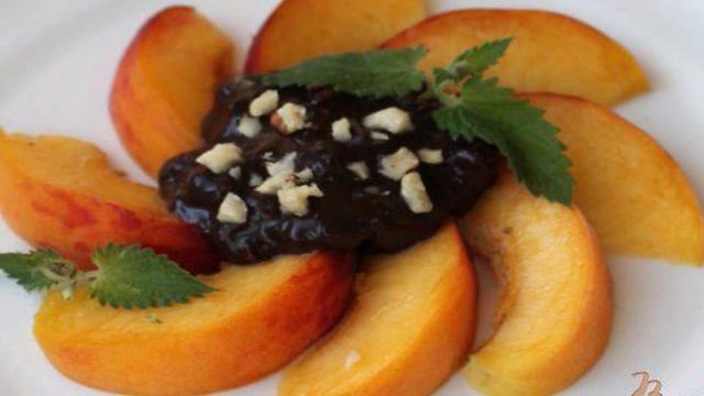 Персик с шоколадом и орехами